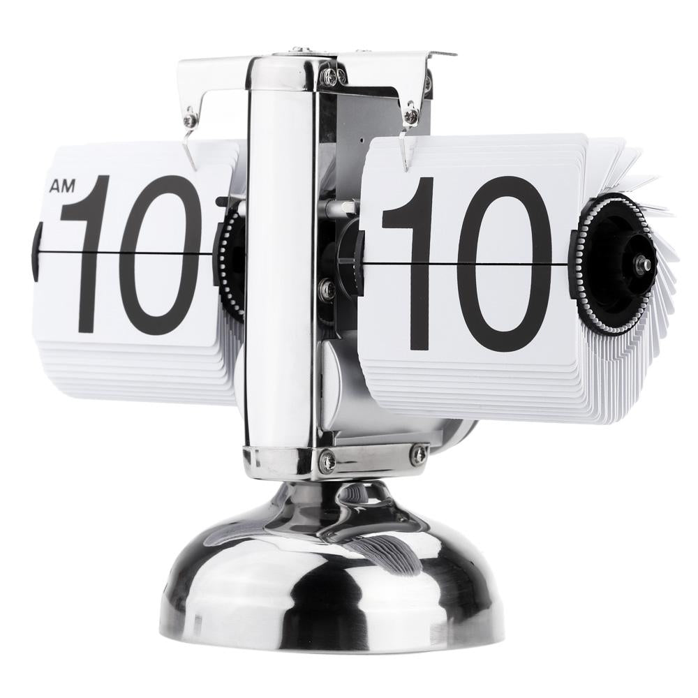 2018 Small Scale Table Clock Desktop Retro Flip Clock Stainless Steel Flip Internal Gear Operated Quartz Clock