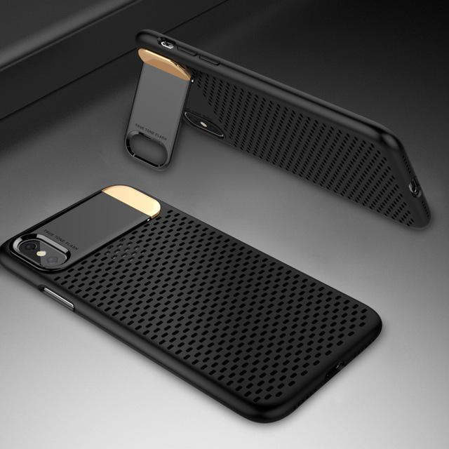 Honeycomb Hollow Heat Dissipation Plastic hard PC +Metal Stand Case For iPhone
