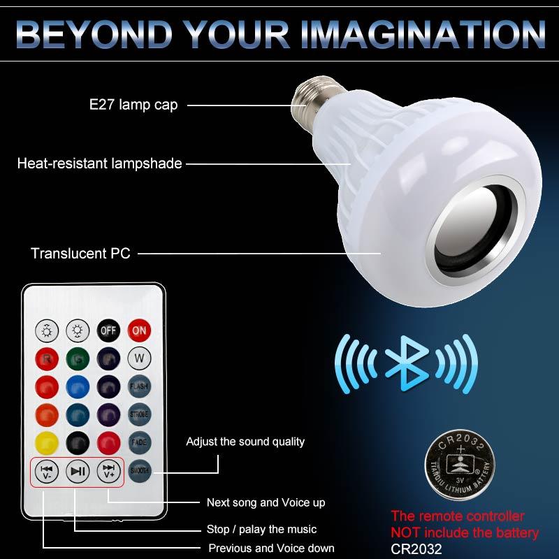 Smart Wireless Bluetooth Speaker Music Playing LED RGB Music Bulb Colorful Dimmable 12W LED Bulb Lampada For Holiday Light